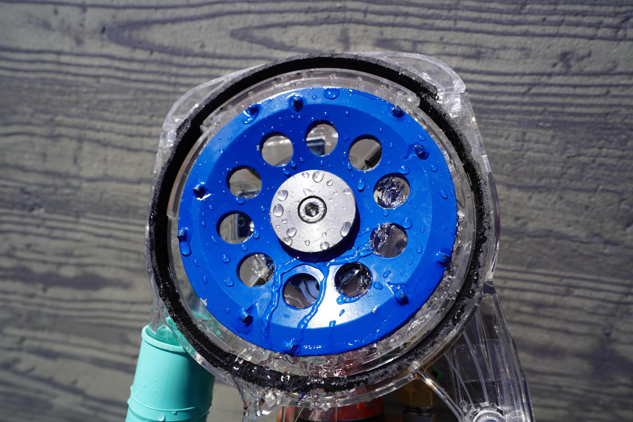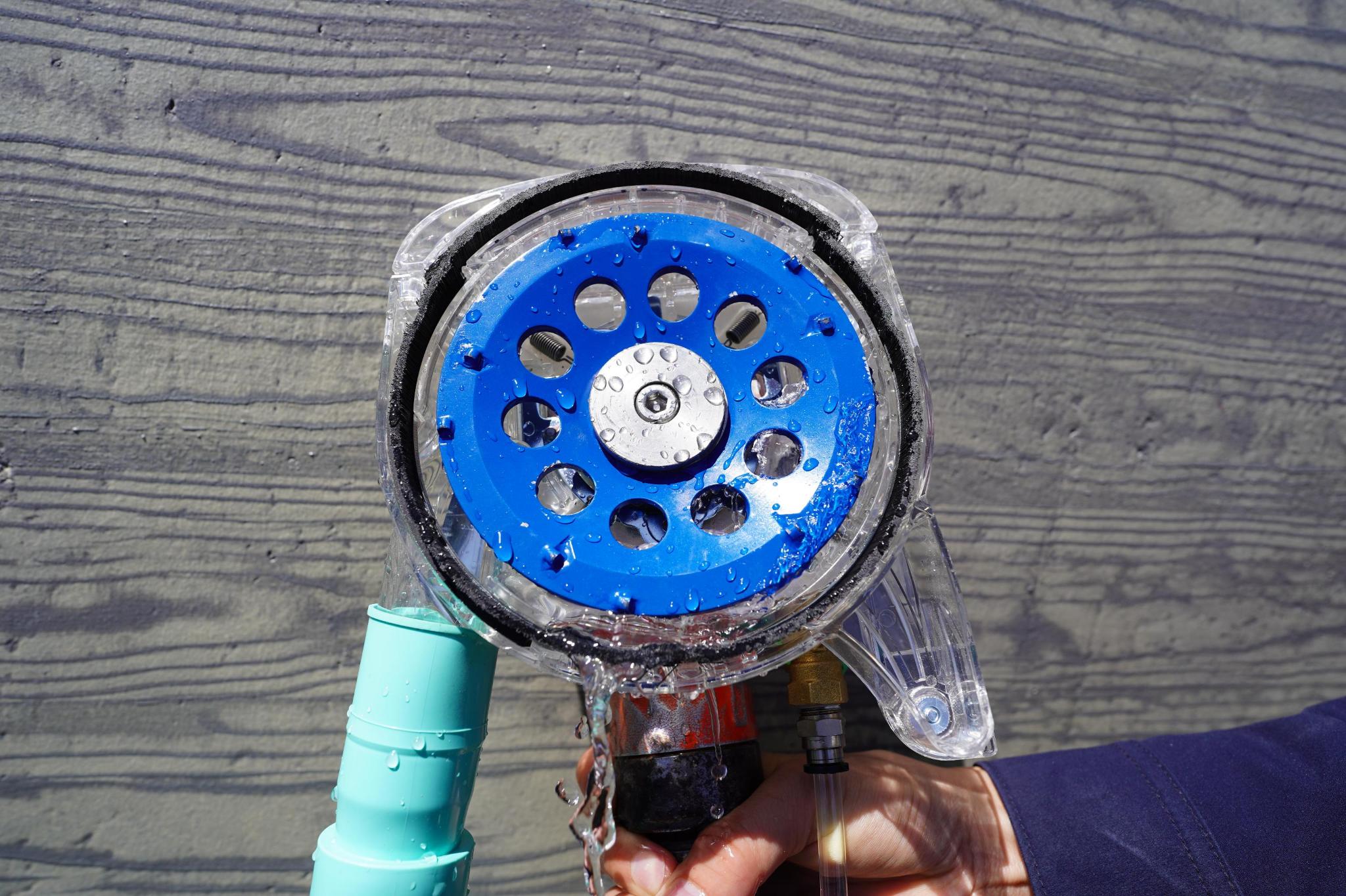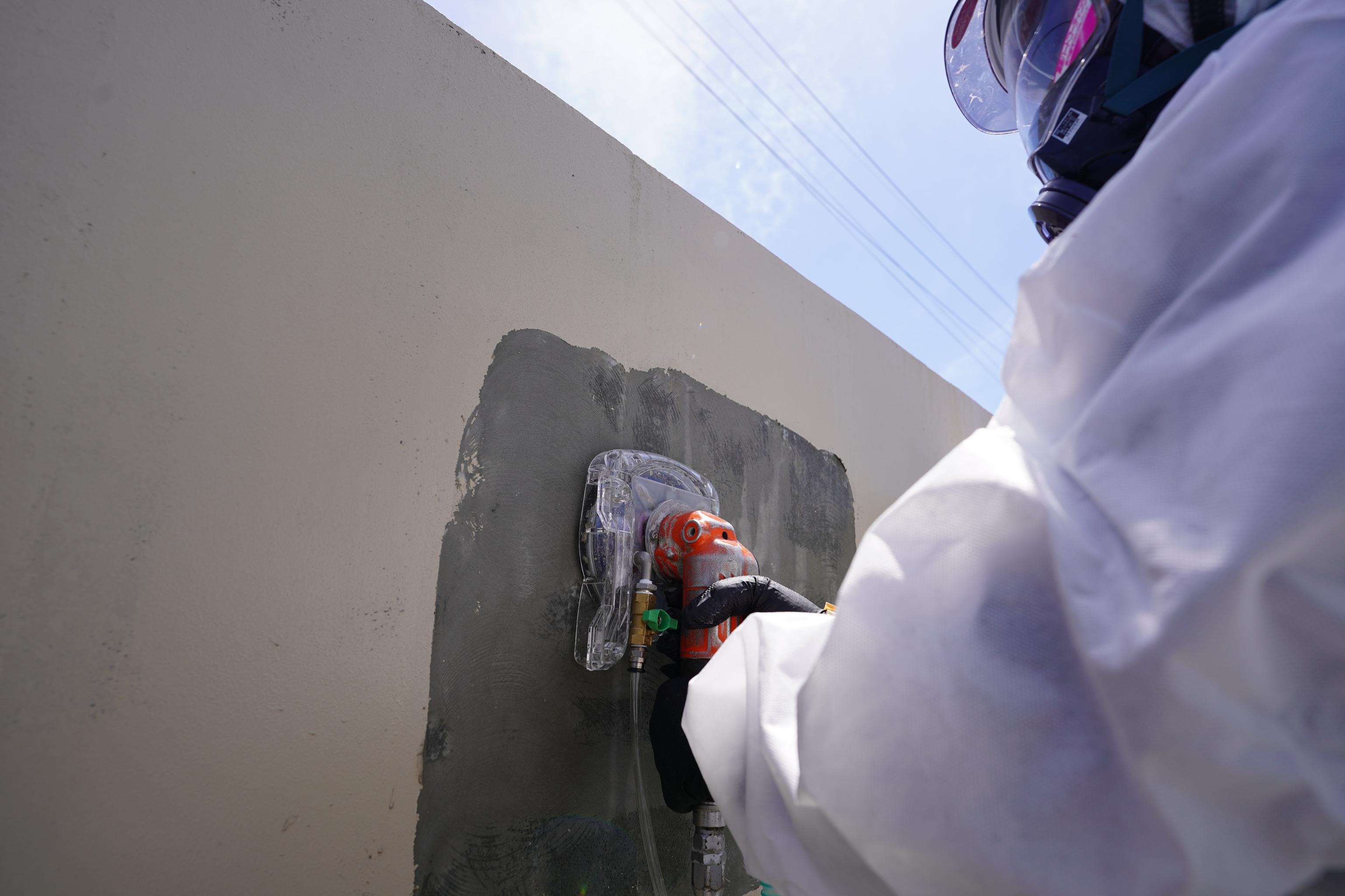 水を噴霧しながら回転するので、湿潤化と同時にアスベストをケレン除去。
